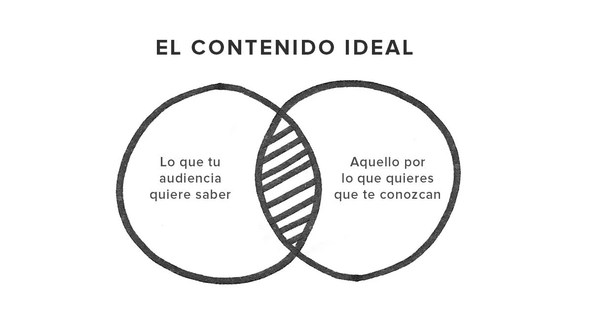 El contenido ideal que debería publicar tu marca (no sólo para videos) debe ser el punto medio entre lo que tu audiencia quiere saber y aquello por lo que quieres que te conozcan.