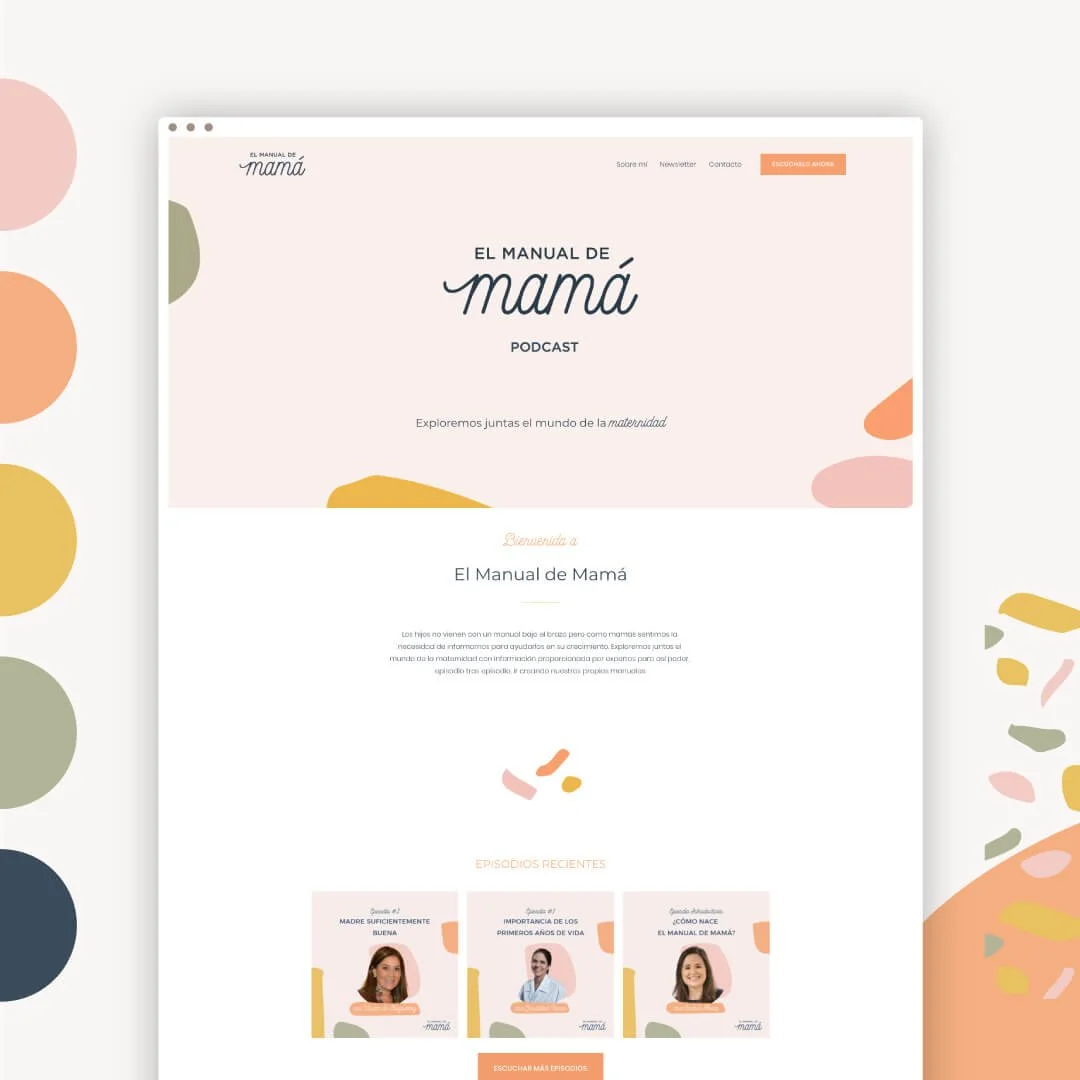 Para el Manual de Mamá lo primero que se diseñó fue la identidad visual con el concepto de que fuera alegre y cercana, características que Cecibel quería transmitir a su audiencia. Además, necesitaba un hogar en internet para mostrar sus episodios, pero Cecibel quería una plataforma que fuera fácil de usar para poder mantenerla. Es por eso que esta web se diseñó en Squarespace, así ella podría subir sus episodios sin mi ayuda.